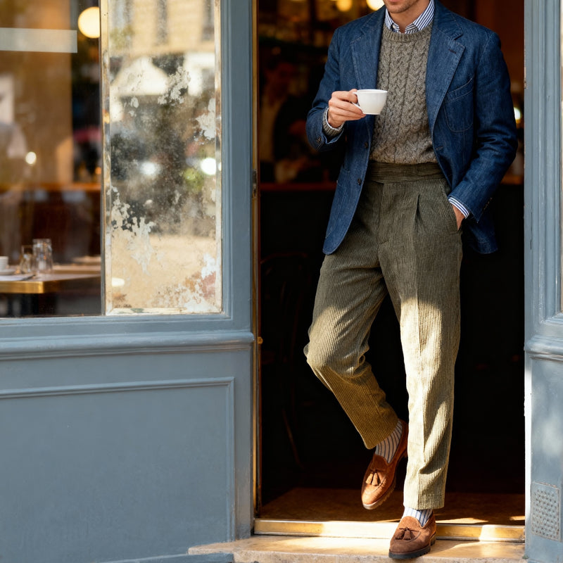 Gurkha en velours côtelé côtes moyennes Tejidos Rebes olive
