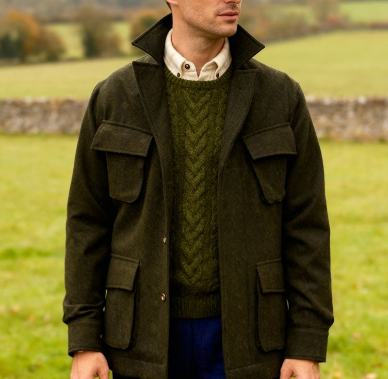 Jungle Jacket tweed de laine donegal vert forêt