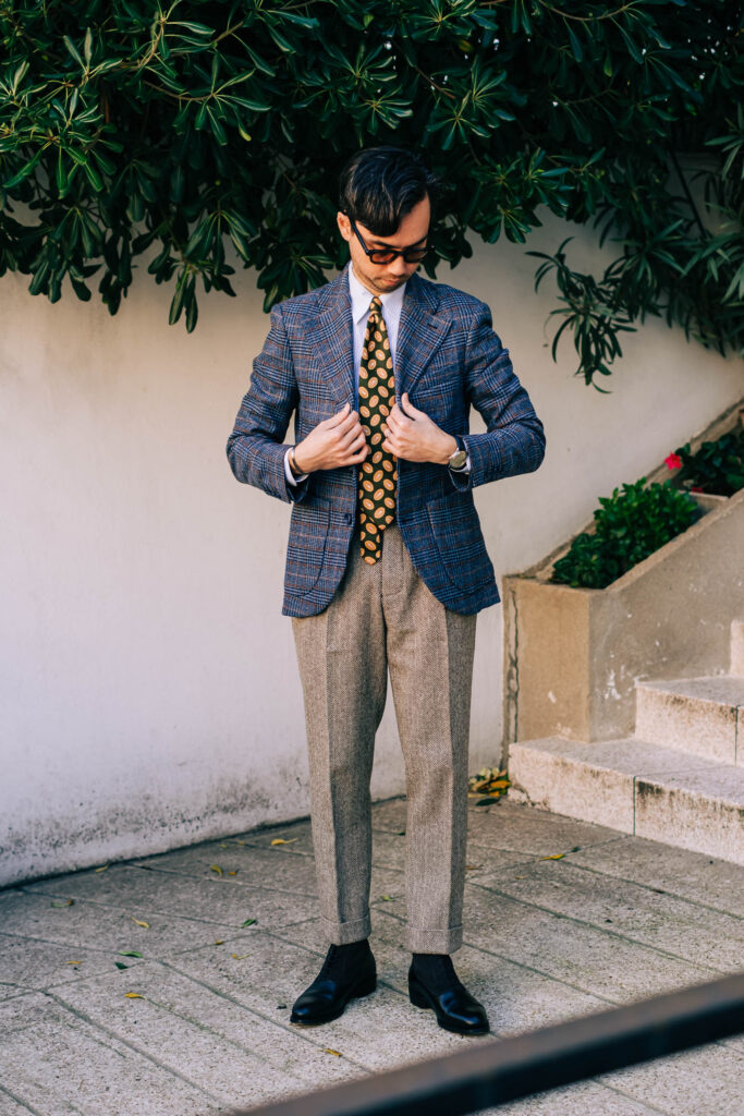 Veste cran florentin déstructurée en tweed Prince de Galles